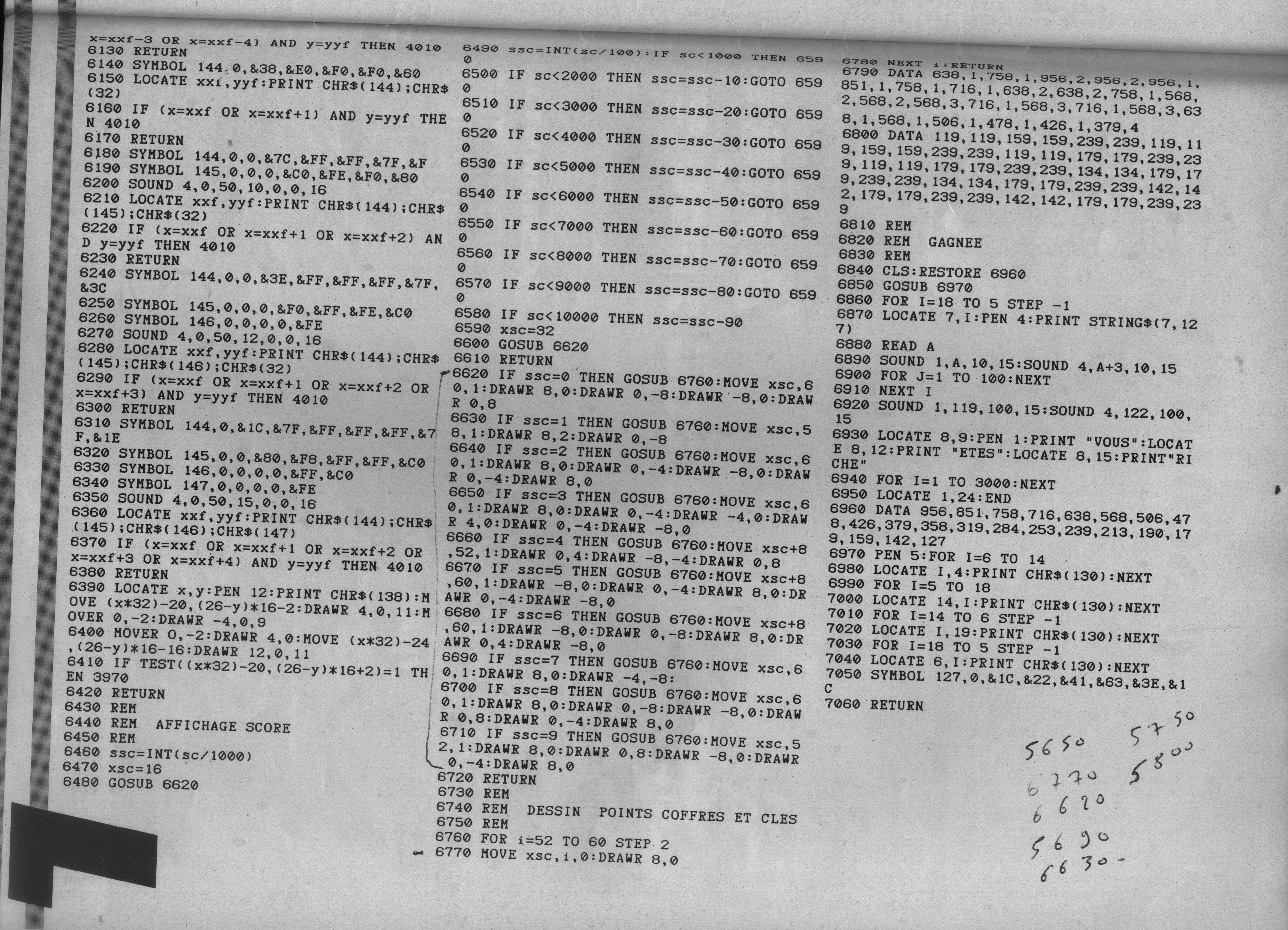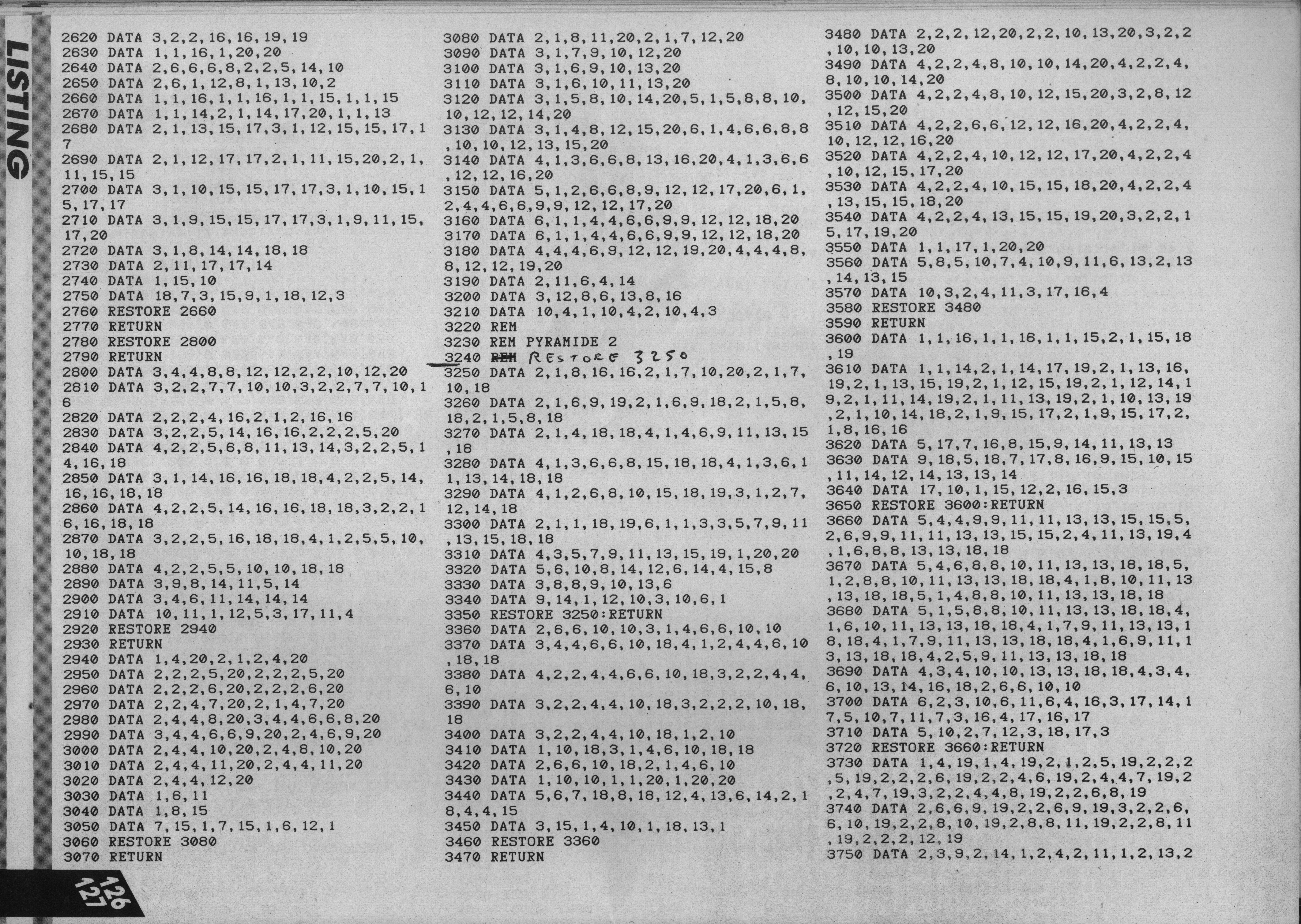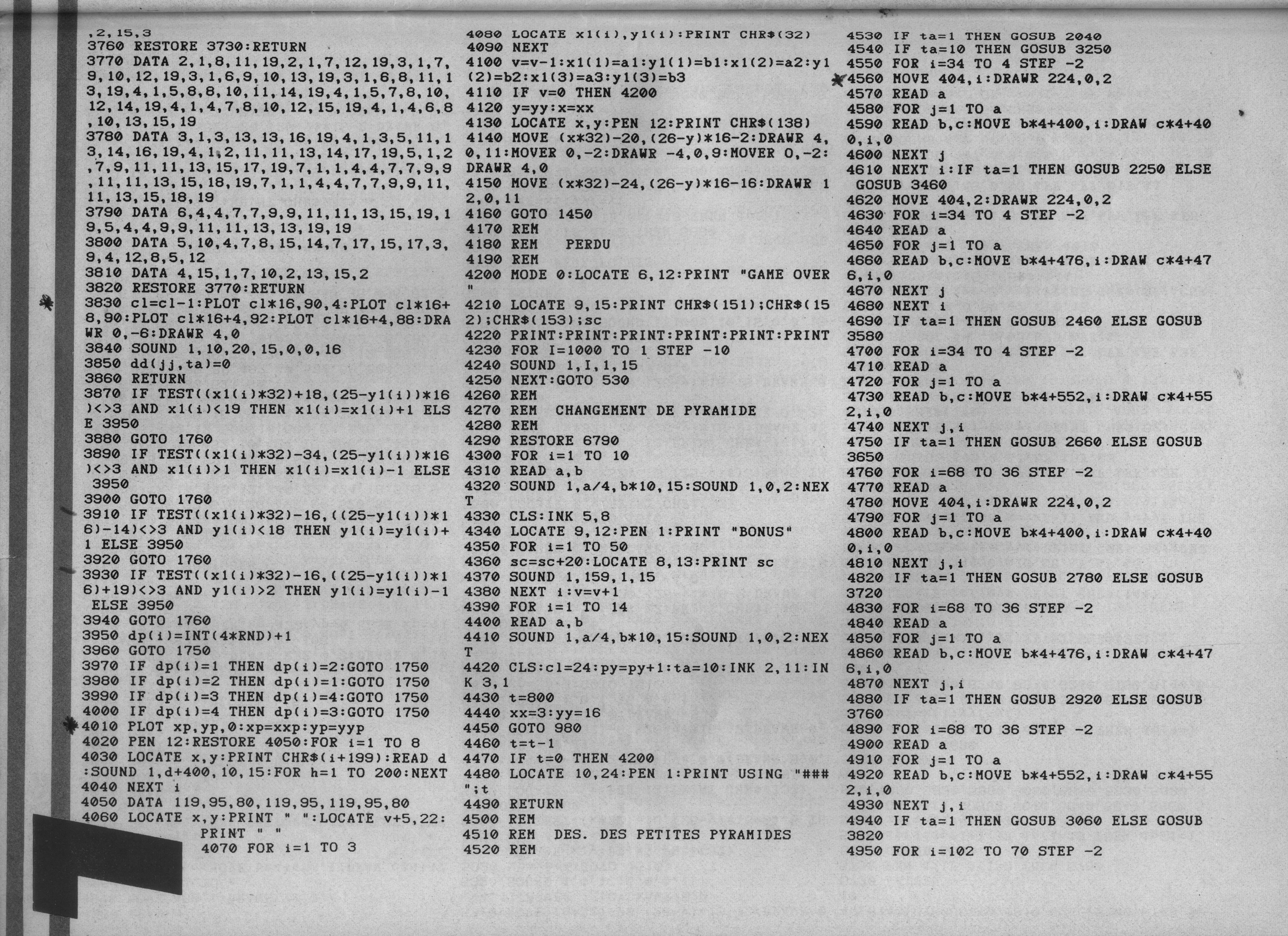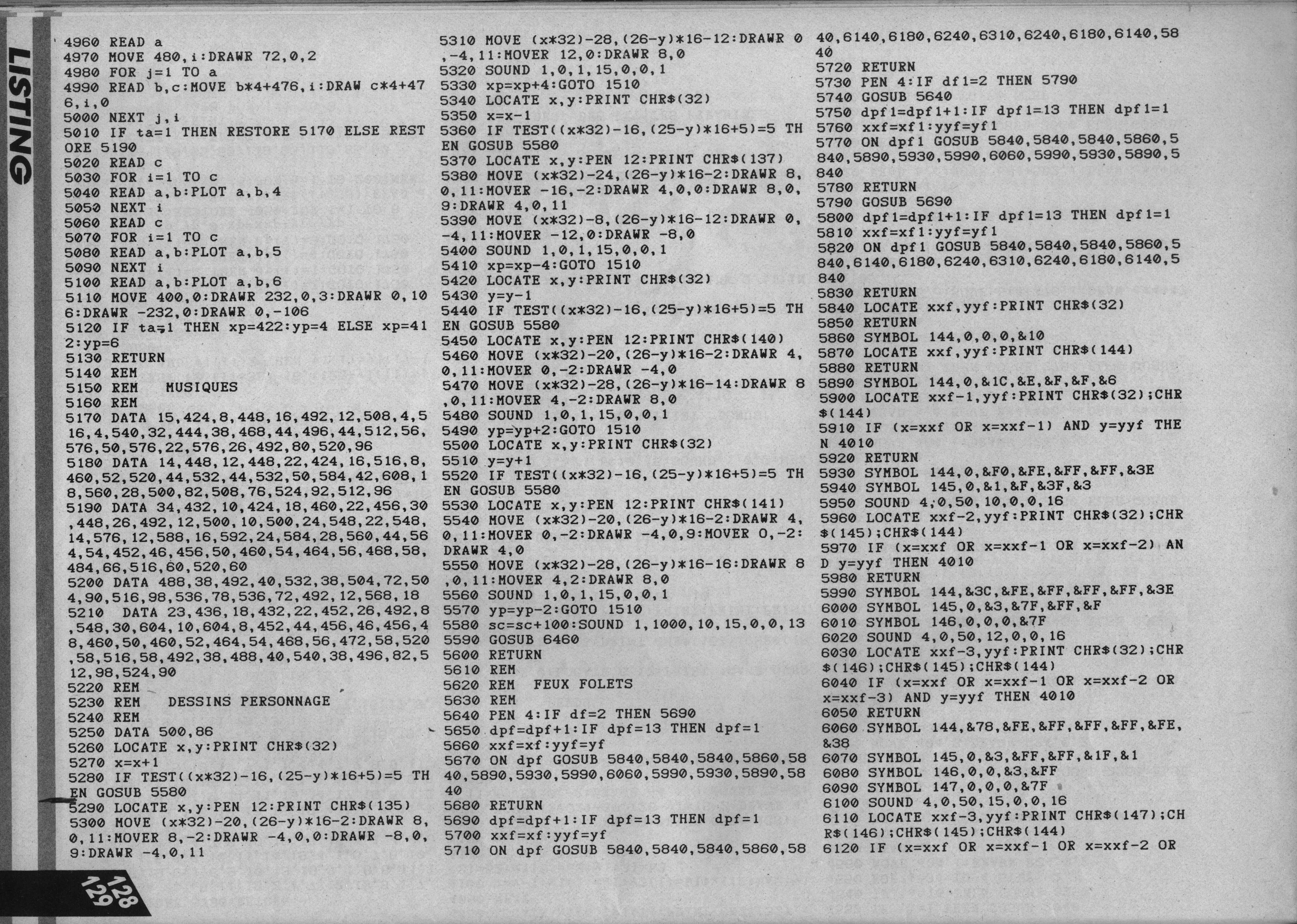t'as vu sur le scan de page 126, l'ancien proprio du magazine a écrit "RESTORE 3250" à la ligne 3250 faudrait surement rajouter un "RETURN" après cette commande..