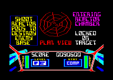 Travaux d'approche Attention, le plus dur reste à faire. Vous êtes en approche de la base ennemie que vous survolez en rase-mottes. Cependant, le ciel continue à vous tomber sur la tête, je veux dire qu'une pluie de météorites vous assaille tout comme au premier niveau Durant cette phase d'action, votre but est de détruire les défenses au sol de la base. Essayez de profiter d'un moment où les météontes sont moins nombreuses pour prendre en enfilade les batteries au sol et détruisez-les ; vous vous retrouverez alors dans le couloir qui mène au réacteur. C'est le seul conseil que je puisse vous donner pour ce niveau. Votre sang-froid et votre faculté à viser juste sont en fait vos seules garanties de succès.