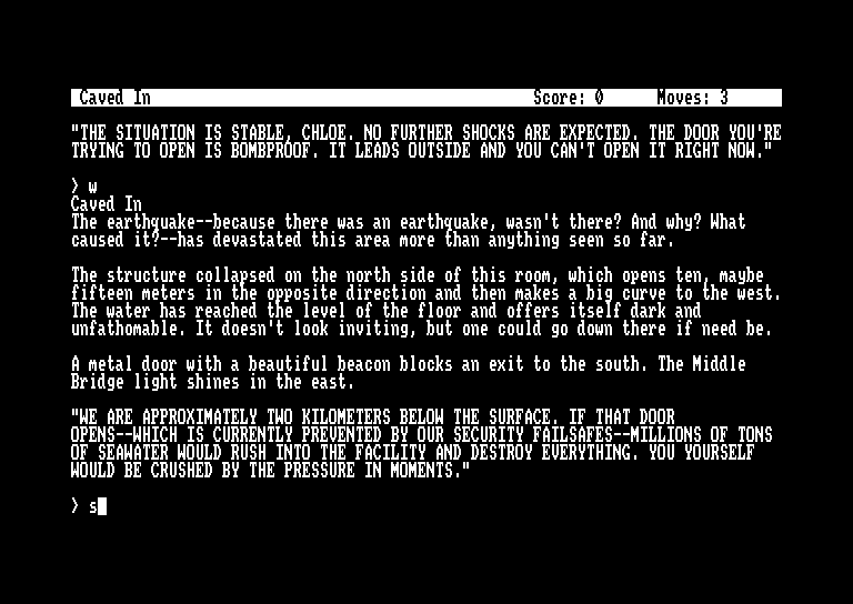 This game was programmed using Inform, which generates Z-code files that are also used by Infocom's range of text adventures.