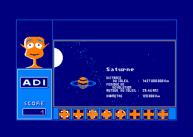 Ce sont les logiciels ADI qui ont retenu ici notre attention grâce il leur gamme complète offrant de réviser quotidiennement les programmes de mathématiques et de français de l'enseignement primaire. L'enfant pourra travailler mais aussi se divertir avec la complicité d'ADI le petit extra-terrestre. Les exercices et l'évolution des connaissances de l'élève pourront être sauvegardes avec le logiciel qui lui proposera de très nombreux problèmes évolutifs. Attention, les logiciels ADI ne fonctionnent que sur les CPC 6128 et 6128+, donc des ordinateurs pourvus de 128 Ko de mémoire vive. NON A LA PROTECTION Il est un point que nous aimerions voir évoluer dans la gamme ADI, il s'agit de la protection logicielle de ces produits qui nous semble bien lourde et superflue. Pour enfin arriver dans le vif du sujet, l'enfant doit être passé par deux systèmes de protections faisant référence à deux grilles de pavés colorés différentes. Fastidieux. Si l'enfant ne perd pas tout simplement ces grilles de protections, le risque est grand de les confondre entre elles lorsque l'on possède deux ou trois produits de la gamme. Robby , A100% n°41 |