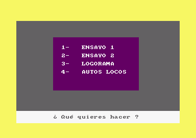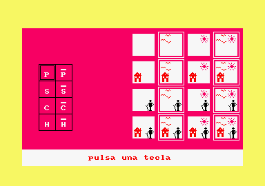 Cuando comenzamos a hojearlas, nos encontramos, en primer lugar, con los creadores, y nos volvemos a sorprender (¡otra vez!) cuando vemos que la dirección es ocupada por sicólogos Evidentemente ALEA vuelve a ser diferente. no es sólo una empresa de programación que ha hecho software educativo. sino que se especializa en este campo, con personal adecuado. Al introducirnos en las instrucciones , podremos comprobar que las hojas tiene letras grandes, con grandes espacios blancos , uso de colores, una gran sensación de limpieza, no son hojas fotocopiadas (algo que abunda demasiado). Se incorporan ejemplos prácticos, como los que nos vamos a encontrar en el ordenador, e incluso vene con ejercicios sin hacer; asi podemos coger práctica, antes que el or (leñador nos empiece a contar fallos. Incluso cuando ya se han terminado de explicar las diferentes funciones de los programas vienen más ejercicios (llamados «Ejercicios Avanzados») para que los alumnos puedan seguir trabajando más allà del programa. El único inconveniente se encuentra en que un colegio no comprará un programa para cada alumno (porque no tienen un ordenador por alumno, sino por cada dos o tres, por lo menos), que seria lo deseable para que cada uno tu viera sus instrucciones y pudiera practicar con los ejercicios que contiene. Lo interesante podria ser que ALEA vendiera las guias sin los programas, de forma que cada alumno pudiera traba jar individualmente. Llegados a este punto, podríamos pensar que hasta ahora sólo hemos visto la parte exlerna del programa, el contenido, el «quiz» de la cuestión, todavia no ha sido visto, y es precisa mente lo más importante. Estamos de acuerdo, pero debemos dejar claro que lo primero que vende, no sólo programas de ordenador, sino cualquier otro articulo, es la impresión que nos cause, y esto es con la vista: con la presentación externa de los programas (imaginemos que tenemos el mismo programa con la presentación de ALEA y con otra presentación, por ejemplo, en la típica caja de video; ¿con cuál nos quedaríamos ? ) y al ver lo que nos ofrece ALEA no queda más remedio que ex Clamar: « iQUE CHULADA! ». LAS MANZANAS, LOS AUTOS LOCOS Y LOS REHENES Como ya dijimos. el paquete com píelo consta de tres programas, que podemos comprar por separado, cuidadosamente graduados en dificultad. El primero de ellos se llama « AUTOS LOCOS », trabaja con los elementos y negaciones, como introducción a los primeros conceptos de lógica. El segundo habla de los operadores (AND , OR , NAND y NOR ): « MANZANAS Y GUSANOS ». El último. « REHENES », tiene como contenido las fórmulas equivalentes y complementarias. Todo se basa en dibujos y colores. Siempre aparecerán en la pantalla 16 cuadros, divididos en cuatro partes, cada una de un color diferente (rojo, amarillo, azul y violeta). Con esos colores, y sus respectivas ausencias (cuando no esté el rojo, el amarillo, el azul o el violeta), nosotros trabajaremos para indicar si se cumplen las condiciones que nos pide el ordenador. Por ejemplo, si queremos indicar una serie de cuadros que tienen el color amarillo o les falta el verde al mismo tiempo lo deberemos hacer: A U V Amarillo unión con el violeta negado, ausencia de violeta (o como se dice en lógica: amarillo o falta de violeta). A esta homogeneidad entre los diferentes programas, se les une la progresión de dificultad dentro de cada uno de ellos e incluso entre los tres, no existiendo ningún salto ni repetición. Las instrucciones sobre los menús y el teclado son iguales, aunque por ejemplo el «CTRL+TAB», que corta cualquier juego para volver al menú principal, sólo funciona en el primer programa. La làstima de todos los programas, en general, es que se abusa de los co lores, siendo prácticamente imprescindible un monitor en color para trabajar con ellos, lo cual no es muy frecuente en los colegios, por su mayor precio. Se echa de menos una guia en la pantalla que indique los colores que hay en cada parte de los cuadros. Lo primero que deberá hacer el alumno es adivinarlos, o fijarse en el dibujo que adjuntamos o en las fotos de pantalla de los juegos. En esto ni siquiera nos ayudan las instrucciones, primero porque lo que es verde en ellas es violeta en la pantalla (aunque no lo avisa), y segundo, y más importante: el orden de los colores en los cuadros de los ejemplos de las guias no es el mismo que en la pantalla. Este es el principal fallo que presenta las instrucciones y el paquete completo en general; como tengamos un ordenador en fósforo verde no podremos jugar o trabajar nada más comprarlo, sino que deberemos adivinar los colores (se han olvidado de este tipo de usuarios). AUTOS LOCOS El primer programa de la serie tiene un menú con cuatro opciones: Ensayo 1, Ensayo 2, Logorama, Autos Locos. En los dos primeros, el ordenador nos enseña las condiciones lógicas. El programa divide la pantalla en dos partes principales; una de ellas con 16 cuadros en la que se encuentran variaciones sobre un dibujo que consta de cuatro elementos (pájaros, sol, casa y hombre), apareciendo y desapareciendo éstos en cada uno. con todas las 1 combinaciones posibles (desde el dibujo vacio hasta el dibujo con los cuatro, pasando por donde aparece sólo el sol , sólo los pájaros, sol y pájaros...). En la segunda parte de la pantalla, se indican las posibles situaciones de los dibujos (S, si está el Sol , P para los pájaros, H para el hombre y C para la casa, y las mismas letras pero con la raya arriba para indicar la ausencia de estos elementos). En el Ensayo 1, elegimos entre los cuadros de las letras, una al azar, y el programa muestra qué dibujos cumplen esa condición (si señalamos S , se marcarán todos los cuadros en los que aparezca el So»). El Ensayo 2 es inverso , nosotros marcamos un dibujo y el ordenador nos indica la combinación de letras correctas (si el dibujo es el que tiene pájaros, hombre y casa se marcará P, H. C y la ausencia de Sol 