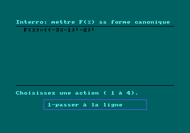 Voici un logiciel éducatif traitant des mathématiques et plus précisément ici, de l'algèbre, cet ennemi juré de la plupart de nos petits écoliers... Il s'adresse aux élèves se trouvant, au moins, en classe de 4e. Le manuel de 16 pages accompagne la disquette, détaille les différentes options proposées. Accompagne d'exemples illustrant bien les problèmes éventuels. Ce manuel se révèle de très bonne qualité. Le logiciel, relativement simple à utiliser (et même très simple lorsque l'on suit les instructions du manuel), demande tout de même un minimum de connaissances en algèbre pour pouvoir fait, il teste les connaissances de l'élève). Trois options principales figurent au menu :