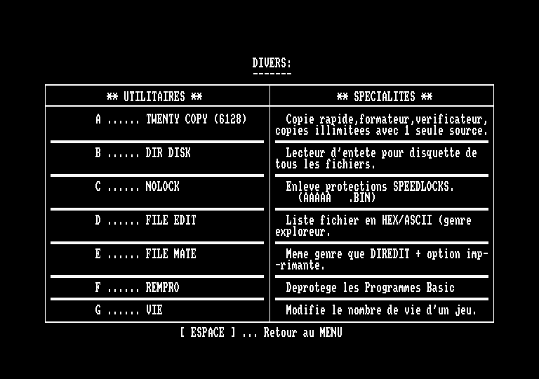 CPCrulez[Content Management System] v8.732-desktop/c Page créée en 450 millisecondes et consultée 1920 foisL'Amstrad CPC est une machine 8 bits à base d'un Z80 à 4MHz. Le premier de la gamme fut le CPC 464 en 1984, équipé d'un lecteur de cassettes intégré il se plaçait en concurrent du Commodore C64 beaucoup plus compliqué à utiliser et plus cher. Ce fut un réel succès et sorti cette même années le CPC 664 équipé d'un lecteur de disquettes trois pouces intégré. Sa vie fut de courte durée puisqu'en 1985 il fut remplacé par le CPC 6128 qui était plus compact, plus soigné et surtout qui avait 128Ko de RAM au lieu de 64Ko. |