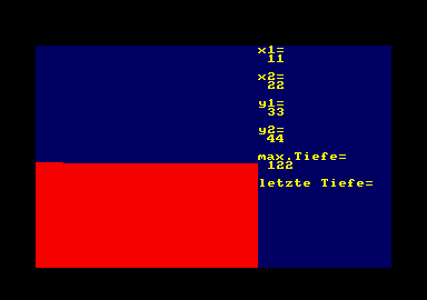 Fractals sind das Ergebnis von Rechenprozessen. Unsere Fractals in den folgenden Listings entstehen durch Iteration. Fraktale sind bunte, chaotisch-bizarre Formen, die nicht zuletzt wegen ihrer Schönheit oft mit Kunst in Verbindung gebracht werden. Die eigentlich sehr nüchterne Mathematik, die sie hervorzaubert, soll im folgenden wenigstens andeutungsweise besprochen werden. Ein Fraktal, wie Sie es mit diesem Programm erstellen können, veranschaulicht das Verhalten von Zahlenpaaren bei einem bestimmten Rechenprozeß, der Iteration. Iterie-ren bedeutet nichts anderes, als einen Rechenausdruck immer wieder mit seinem eigenen, vorher berechneten Ergebnis zu füttern. Als besonders interessant hat sich die Iteration Xneu = (Xalt)2+ c erwiesen. Die Zahl der notwendigen Iterationsschritte, d.h., wie oft man das neue Ergebnis wieder als Eingabe verwenden muß, um in Xneu einen bestimmten Wert zu erreichen (z. B. 10), ist chaotischen Schwankungen unterworfen, sofern man die Konstante c aus einem geeigneten Bereich wählt. Es kann aber auch Vorkommen, daß dieser Wert selbst nach sehr vielen Iterationsschritten noch nicht erreicht wurde. Deshalb ist es notwendig, eine maximale Anzahl an Schritten anzugeben, bei deren Erreichen die Suche aufgegeben wird. Diese Anzahl heißt maximale Untersuchungstiefe. Die Aufgabe des Computers besteht nun darin, solche interessanten Zahlenpaare durchzurechnen. Der Punkt, dessen Koordinaten durch ein solches Zahlenpaar gegeben sind, muß mit einer Farbe auf den Bildschirm ausgegeben werden, die der Zahl der notwendigen Iterationsschritte entspricht. Weil nun aber im Mode 1 nur drei Farben und der Hintergrund zur Verfügung stehen, wiederholen sich diese drei Farben sequentiell. Nicht angezeigt wird der Punkt, wenn mit der maximalen Untersuchungstiefe der für Xneu geforderte Wert (im Programm 10) noch nicht erreicht wurde. Vielleicht ahnen Sie schon, daß das Problem im enormen Rechenaufwand liegt. Für jeden der 40.000 bzw. 10.000 Bildschirmpunkte muß ein Iterationsprozeß durchgeführt werden, dessen Schrittzahl zwar beschränkbar, aber nicht absehbar ist. Selbst Maschinenprogramme haben hier ihre Schwierigkeiten. Bei so viel Aufwand um ein Chaos fragen Sie sich vielleicht, warum man nicht gleich den Random-Generator einsetzt, derfür Zufälle doch immer gut ist. Nun, das Ergebnis wäre äußerst kläglich, ein bunter, undefinierbarer Brei. So seltsam es auch klingen mag: Dieses Chaos ist kein Zufall. Der Eindruck kann aber entstehen, weil bei solchen Vorgängen winzige Änderungen des Ausgangspunktes immense Verschiebungen im Ergebnis zur Folge haben. Doch nun zum Programm. "Fractals” besteht aus einem MC-Teil (DATA-Zeilen), der die zeitraubende Berechnung übernimmt, und aus einem Basic-Teil. Er befaßt sich im wesentlichen mit der Eingabe, der Menüsteuerung und der Initialisierung des MC-Teils. Das abgedruckte Usting ist einzugeben und mit RUN zu starten. Bricht die Initialisierung mit der Fehlermeldung Error... ab, dann stimmt die Prüfsumme der angegebenen DATA-Zeile nicht. Sie ist zu verbessern und das Programm erneut mit RUN zu starten. Nach erfolgreichem Abschluß der Initialisierung, erscheint das Hauptmenü. Um das Programm aufzuzeichnen, wählt man ABBRUCH und gibt SAVE "Fractals” ein. Nun gelangt man, wie in den meisten anderen Fällen auch, mit GOTO 90 wieder ins Programm. Folgende Menüpunktè können gewählt werden: Neues Fraktal numerisch Ein eventuell schon im Speicher befindliches Fraktal wird gelöscht und die Eingabe des neuen, zu untersuchenden Bereichs gefordert (vier Werte, z.B. -0.6, 2.1, -1.2,0). Danach muß die maximale Untersuchungstiefe angegeben werden, also die Zahl der Iterationsschritte, bei der die Suche nach einem Farbwert für den aktuellen Punkt abgebrochen wird und er somit schwarz bleibt. Offensichtlich ist diese Zahl ein bedeutender Faktor für die Rechendauer, die bei größerer Tiefe entscheidend zunimmt. Auch für die Dichte des Fraktals ist sie maßgebend. So entlarvt eine größere Tiefe auch Punkte, die sonst möglicherweise schwarz geblieben wären. Nach mehreren eigenen Versuchen lernt man den Umgang mit dieser Zahl recht schnell. Außer der max. Untersuchungstiefe muß noch das gewünschte Format angegeben werden. Format 1 (¼ des verfügbaren Bildschirms) erlaubt zwar nur einen groben Überblick, nimmt aber dafür nur ¼ der Rechenzeit des Großformats in Anspruch. Die Fraktalberechnung kann mit Doppel-Break unterbrochen werden. Die Farben lassen sich mit der Taste N zurücksetzen; bei Druck auf J erscheinen sie wieder. Dies soll die Leuchtschicht des Monitors schonen. Mit der Taste A läßt sich die Anzeige der Tiefe anfordern, bis zu der gerechnet werden mußte, um die Farbe des letzten Punktes zu ermitteln. Nochmaliges Drücken von A löscht sie wieder. Wegen der langsamen systeminternen PRINT-Routine bringt der Verzicht auf eine dauernde Anzeige Geschwindigkeitsvorteile. Neues Fraktal grafisch Vorbedingung ist hier, daß ein (nicht unbedingt fertiges) Fraktal bereits im Speicher steht. Diese Option erleichtert Ihre persönliche Entdeckungsreise in die Welt der Fraktale. Nun müssen keine Zahlen mehr eingegeben werden, sondern man kann frei mit den Cursor-Tasten den Bereich abgrenzen, der vergrößert werden soll. Die vier Tasten sind für die entsprechenden vier Linien zuständig. Mit SHIFT+ Cursor-Taste bewegt man die Grenzen in entgegengesetzter Richtung. Die Schrittweite, mit der sich die Begrenzungslinien bewegen sollen, können Sie mit den entsprechenden Ziffern-Tasten festlegen (Anfangswert = 4). Der aktuelle Bereich, den das Fenster umrahmt, wird rechts noch einmal numerisch angezeigt. Berechnung fortsetzen Diese Option bietet Ihnen die Möglichkeit, die Berechnung nach einer Unterbrechung mit ESC oder nach Laden eines noch unvollständigen Fraktals von Cassette oder Diskette weiterzuführen. Inks ändern Hier kann man aus den 26 möglichen Farben die Palette auswählen, die das Fraktal am bes