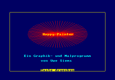Die Beschreibung der Fähigkeiten von Happy-Painter ist knapp, aber ausreichend. Um mit der Bedienung des Programms voll vertraut zu werden, empfehlen wir Ihnen, mit den Funktionen des Programmes zu experimentieren. Die Steuerung mit dem Joystick dürfte zu Beginn etwas ungewohnt sein, da der Zeiger beschleunigt. Mit der Zeit tritt jedoch ein Gewöhnungseffekt ein. Zudem können Sie Beschleunigung und Geschwindigkeit des Joysticks über die Joystick-Funktion den eigenen Bedürfnissen anpassen. Wer mit der Joystick-Steuerung grundsätzlich nicht einverstanden ist, kann von Programmzeile 10010 bis 10230 seine eigene Abfrageroutine einbauen. Die Variablen xb, yb müssen vor Verlassen der Routine die neuen und xalt, yalt die alten Koordinaten des Cursors enthalten. Außerdem muß der Cursor bei Verlassen der Routine auf seiner neuen Position stehen. Besitzer eines Grünmonitors können bei Bedarf die Belegung der Farbregister in Zeile 8400 ändern. (Uwe Siems/ma), HC |