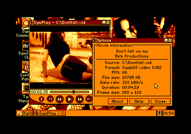 SymAMP est un lecteur de fichiers audio ( Audio Music/Module Player ) , il dispose d'un editeur de playlist et sait gérer jusqu'à 100 chansons. SymAMP support pour le moment les fichiers .SKM de Starkos v1.0 et v1.1 , et bientôt les modules du SoundTrackker 64/128 de BSC. Vous pouvez régler le volume, changer de fichier, faire une pause. De nombreuses options sont disponibles en mode interactif , choisir les modes mono/stéreo (?), la lecteur en continue ou d'accès aléatoire aux fichiers .