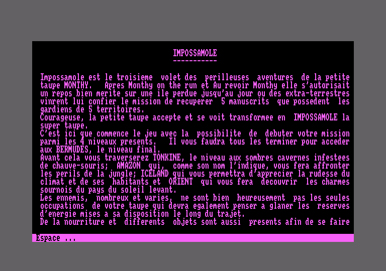 CPCrulez[Content Management System] v8.732-desktop/c Page créée en 300 millisecondes et consultée 79 foisL'Amstrad CPC est une machine 8 bits à base d'un Z80 à 4MHz. Le premier de la gamme fut le CPC 464 en 1984, équipé d'un lecteur de cassettes intégré il se plaçait en concurrent du Commodore C64 beaucoup plus compliqué à utiliser et plus cher. Ce fut un réel succès et sorti cette même années le CPC 664 équipé d'un lecteur de disquettes trois pouces intégré. Sa vie fut de courte durée puisqu'en 1985 il fut remplacé par le CPC 6128 qui était plus compact, plus soigné et surtout qui avait 128Ko de RAM au lieu de 64Ko. |