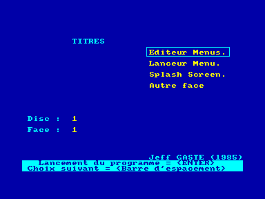Utilisateurs de disquettes, simplifiez-vous la vie, œuvrez dans le confort et la facilité. Mode d'emploi : Le premier programme (indications incluses), permet de modifier ou de créer des catalogues, directement exploitables par le second. Ce dernier permet la recherche aisée d'un titre et le lancement du programme concerné par un minimum de manipulations.