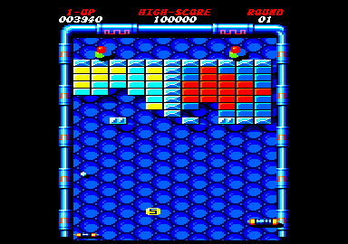 Le casse-brique est l'un des tout premiers jeux dits vidéo que nous avons vu apparaître dans certains lieux de perdition. Après le Pong (1973), où deux joueurs se renvoyaient une balle à l'aide d'une simple raquette, arrive le Break Out. Il est le premier casse-brique ; c'est un des ancêtres de tous nos jeux d'arcades actuels. Un prisonnier essaie de s'évader en cassant tous les murs de briques de l'enceinte de sa prison, voilà le scénario de Break Out. Un scénario que l'on oublie rapidement Le jeu est simple, îa difficulté est croissante, c'est de l'arcade efficace et les sous partent rapidement, sniff ! C'est tellement efficace que, lorsqu'en 1986 Taito sort ARKANOID, c'est un succès mondial immédiat !! C'est dans les vieilles casseroles que l'on fait les meilleures soupes. Le bête mur de briques remis au goût du jour fait un malheur dans toutes les salles d'arcades et chacune de ses adaptations sur chaque micro-ordinateur connaît le succès. Sur Amstrad CPC, la transposition est un véritable coup de maître. Le jeu est en seize couleurs et l'écran a été reformaté, chose encore trop rare sur nos CPC. En effet, alors que sur la plupart des jeux d'arcades l'écran de jeu est dans le sens de la hauteur, sur nos micros nous retrouvons les mêmes jeux avec un écran dans le sens horizontal, ce qui enlève tout attrait à ces jeux. A l'instar de Donkey Kong de Océan, l'écran de ARKANOID a été reformaté dans le sens de la hauteur pour une parfaite ressemblance avec le jeu d'arcade. Cela a grandement contribué à son succès sur CPC. Un succès tel qu'aujourd'hui Imagine nous propose un ARKANOID II dans la lignée du précédent Et il serait marrant que cet ARKANOID II soit adapté du jeu micro vers la borne d'arcades. LE VAUS AUX HORMONES On y va pour un rapide descriptif des options de jeu et autres customisations possibles. Le vaus (prononcez "vôsse" sans cracher partout, merci), c'est la raquette que l'on déplace pour renvoyer la baballe. Je ne vous re-exphque pas que certaines briques contiennent des gélules qui en tombant sur votre raquette viennent rompre la monotonie du jeu en apportant des "plus". Bin, je vous l'ai ré-expliqué.