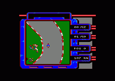 COURSE D'ENFER Le circuit est vu de dessus comme dans Super Sprint (Electric Dreams) et Grand Prix Simulator (Code Master). Mais à l'opposé de ceux-ci, le circuit n'est pas vu en entier par le joueur, mais donne lieu à un très bon scrolling multidirectionnel. L'animation des motos est relativement réaliste étant donné la taille des sprites qui est plutôt réduite. Les graphismes du décor sont, eux aussi, de petite taille mais sont extrêmement bien dessinés. Par exemple, les panneaux publicitaires, où on peut y lire Ford, Pepsi, Mobil 1 et j'en passe ; les pneus et les arbres qui jonchent la route sont également bien réalisés. La musique est, quant à elle, complètement... INEXISTANTE ! Les gens de Dynamic nous avaient pourtant habitués à de bonnes musiques, mais là, seul le bruit des moteurs et celui des explosions se font entendre. C'EST TOUT Aspar GP Master est malgré tout très honorable. Il permet dé commencer un nouveau championnat ou d'en continuer un. Dans ce cas, il vous faudra entrer le code du championnat en question. Mais aussi, et c'est là que cela devient intéressant de s'entraîner, d'essayer de se qualifier (j'ai bien dit essayer), de voir où vous êtes classé dans le championnat, de survoler le circuit pour pouvoir en repérer le tracé. Une chose qui vous choquera au début, c'est la façon dont on contrôle la moto, mais on s'y fait à la longue. Allez, bonne chance, et j'espère que vous arriverez plus loin que mot ! JIPY , A100% n°18 |