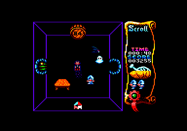 Abandoned in the eerie, haunted castle you can only escape by finding the Golden Key.The castle consists of a large number of rooms, each of which has between one and three doors. As you walk across a room and through a door, the screen clears and the new location is drawn. The program runs very fast and there is no delay while the redrawing takes place. The quality of the graphics in this game is the best , movement is smooth, and user defined graphics are used to their limit to produce some amazing characters such as evil-looking witches complete with broomstick As I said, the idea is to explore the rooms, collecting the objects and using them For example, some doors may be locked and to open them you'll have to find the correct colour-coded key.