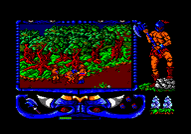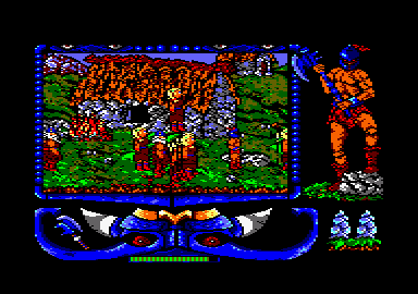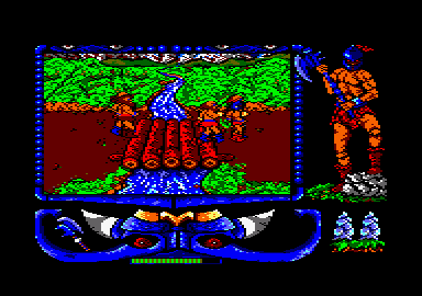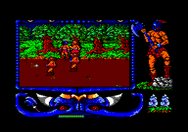 El pueblo Khun está asentado en tas grandes llanuras, aprovechando su gran fertilidad y la abundancia de caza que allí existe. Era una tribu respetada por las demás debido a su gran fuerza y poderío. Como todos los inviernos, los guerreros del pueblo se dirigen a la montaña sagrada para ofrecer ofrendas al dios Irkal, guardia de su pueblo, pero allí sufren un brutal ataque de una tribu del este, tos Krull, los pocos guerreros que sobreviven después de la salvaje lucha, corren a avisar al pueblo deI peligro que se avecina. Al no poderles hacer (rente, porque la mayoría de los guerreros han muerto, se ven obligados a marchar a las tierras del norte, inhóspitas y poco fértiles, pero hay algo que les impulsa a vivir allí, el odio y el rencor a la tribu que les había echado de sus tierras. Durante años los viejos han enseñado a los jóvenes las nobles artes de la guerra y entre todos estos hay uno que destaca, ATROG, será el elegido para vengar a su pueblo y al mismo tiempo recuperar las sagradas piedras de los dioses, ¿habrá sido su duro entrenamiento en vano, eso depende de ti? El juego se desarrolla en tres fases: El poblado, el bosque y la fortaleza. Estas se cargarán una vez acabada la anterior, pero también podemos cargarlas independientemente si sabemos los códigos correspondientes de la segunda y tercera fase. Partimos con tres vidas que se podrán ir incrementando, así como para pasar de fasa hará falta aniquilarse a todo el poblado Krult tres veces. Para ello contamos con nuestra destreza y nuestros : pufíos así como con un hacha que no llevaremos desde e¡ principio, sino que la conseguiremos si pasamos a la segunda fase. Os damos unos consejos: — Para conseguir el hacha, dar un golpe en el cuello a los enemigos. — Aprende artes de guerra y despista a los demás. — Y sobretodo, evita la lucha cuerpo a cuerpo.