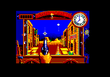 DANS L'OUEST SAUVAGE Nous sommes en 1885. Vous êtes au Far-West, quoi. Première étape de ce jeu divisé en quatre niveaux, le sauvetage d'une pauvre femme coincée dans un chariot entraîné par des chevaux emballés (mais quel est le dégueulasse qui a osé emballer des chevaux ???). N'écoutant que votre courage, vous vous lancez à sa rescousse au triple galop. Sniff ! Conseil : n'essayez pas de ramasser les affaires que notre donzelle perd en cours de route. Ça ne rapporte que des points... et une flèche dans l'œil. La scène de poursuite vue de côté est entrecoupée de deux scènes vue de dessus où il vous faudra éviter les tirs croisés de la cavalerie et des Indiens. Des graphismes antédiluviens animent cette scène où les méchants sont, bien sûr, les Indiens (c'est pas un film ricain pour rien). Vous pouvez leur tirer dessus donc.