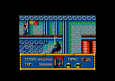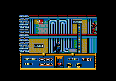 Les fans de Batman sont nombreux. Charisme surpuissant du héros, ou matraquage habile des médias, je ne saurais dire, mais toujours est-il que nous avons eu droit aux B.D., aux feuilletons, au film, aux T-shirts, aux badges, aux disques, et enfin, aux jeux vidéos. La présence de Batman sur GX 4000 n'est pas une surprise, car il a suffit de le passer sur cartouche, vu que le jeu existait déjà sur CPC. Océan n'a pas tenu compte des nouvelles capacités de la gamme "+" d'Amstrad, le jeu est identique à l'ancienne version. Justement, tout de même, quelques mots sur le jeu, car vous n'êtes pas censés avoir une culture ludico-élec-tronique infaillible (contrairement à Kaaa qui apprend par cœur tous les articles de tous les numéros de Joystick, hebdos y compris). L'action du jeu retrace pas à pas celle du film qui a temps plu aux critiques de cinémas spécialistes en dessous de tables divers. La tenue noire sur le corps, la Bat-cape sur les épaules, et le Bat-boomerang à la main, vous voilà dans l'usine chimique Axis. Le Joker rôde avec ses hommes, et vous en mettre plein la tête. Escalader des échelles, éviter des fuits d""acide, et descendre des zignobles, tel est le lot quotidien de Batmaaaaaaan! Le jeu vous fera aussi diriger la lBat-mobile et la Bat-wing pour enfin arriver dans la superbe cathédrale de Gotham city pour le combat ultime contre le Joker, votre ennemi de toujours. La page de présentation est superbe, la musique qui accompagne le jeu est attrayante, ça, c'était pour les points très positifs. Autre point intéressant, le jeu est assez difficile, et les tableaux sont grands et complets: il sera difficile de le terminer en quelques parties. Par contre, l'action est plutôt lente, et les graphismes peu fins. C'est dommage. Dites monsieur Océan, vous pouvez pas nous faire une version spécifique GX 4000? Ce serait super! Seb