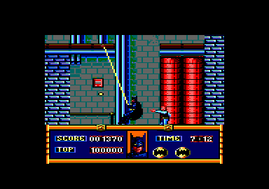 CINQ BATEPREUVES Batman, le jeu, est en fait constitué de cinq parties, issues de diverses scènes du film de Tim Burton. Dans la première, nous assistons à la naissance du Joker : Batman ayant appris qu'une réunion de méchants a lieu dans une usine de produits chimiques, vous dirigez le héros en cape dans un jeu de plateau à la recherche de Jack Nieper. Batman utilise ses célèbres Batarang contre les armes à feu et grenades des sbires du futur Joker. Pour accéder aux divers niveaux de l'usine, on peut emprunter les échelles ou utiliser le Batcâble, solution rapide et pratique permettant de surprendre vos adversaires.