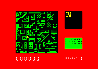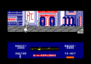 Blade Runner was the film that gave Harrison Ford his big break. The American actor played the part of a futuristic bounty hunter who earns his living by hunting down, and "retiring" Repliroids. "Retiring" the Repliroids is really a polite word for chasing them through the streets and blasting them with your laser. Like Ghostbusters you get a plan view of the city to move your bounty hunter's craft around on — except this has more than one screen area to move around on. You also see a large scale "map" for the rest of the city which indicates just where the replidroids are hiding out. You must use the large scale map to move to the sector inhabited by a droid — represented by a flashing square — make contact with it. Then it's onto the scrolling chase scene. Your craft lands and a large white figure gets out. That's your bounty hunter. He has to chase along the city streets packed with awkward pedestrians to gun down the droid. Running into pedestrians and killing them is a crime "pedestricide" would you believe! You'll be penalised for committing it. You have to dodge the crowds — but don't stay in the road too long otherwise you'll get run down by a speeding C5! The graphics are pretty crude Although the white running figures in the street section of the game are quite effective The backgrounds in this part of the game are nice too.