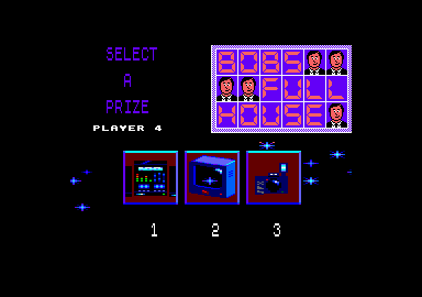 The first round, as you know (come on, admit it!), is a race to answer four questions and light the cornermost numbers of your bingo card. As soon as Bob has popped the question it's a sprint to your bell, each player having a different key. If you play the computer, watch out: its players are quick but thick, not much competition but they get in the way. To answer a question you not only have to know the answer, but you've got to type it in: no trouble when the answer is something simple like "blue,' but when it comes to "Who was India's first female Prime Minister?" you may know the answer but can you spell it? The spelling element frees more memory for question storage, since you are required to type in the correct answer, rather than choosing from four options, as is the case in multiple choice quizzes such as Question of Sport. The spelling also gives each question a longer shelf life, because when the computer answers you don't get to see what it writes to itself. You could, for example, remain forever in the dark as to the identity of the youngest member of the House of Lords! Rounds progress as in the show: light the middle line of your card and then illuminate all your remaining numbers. The winner chooses from a range of wonderful household appliances: fridges, stereos and kettles, golly gosh I can hardly contain my excitement. The champion gets the chance for a go at Bob's Golden Bingo Card to win a holiday. You've one minute to reveal the letters spelling out a dream destination. This final lap is really tough, with over twenty questions in under a minute. The prize sequence sounds daft, but surprisingly it does give the game a well rounded feel. I cannot deny that since I despise the TV show and its slick host I was expecting to have to do a hatchet job. Yet such is the skill and attention to detail with which the licence has been translated that you may be as pleasantly surprised as I was. Put together with the usual Domark professionalism, Bob's Full House is hardly a classic. It's better than the telly, but then, is that enough? TW, AA |