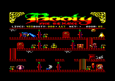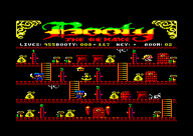 The game is a platform and ladders affair, you, cast as Jim the cabin boy, must run about a ship exploring its twenty holds and collect various treasures. Many of these are hidden behind numbered doors and to open these you need to find the key with the corresponding number.Every screen is packed with cargo, treasures, doors and keys, most of which overlap rather badly when you walk past them. This overlapping sometimes makes it difficult to see whether or not you have picked something up. To make your job more difficult there are ghost pirates, trapdoors, the captain's parrot and some extremely large rats. Also lying in wait are booby trapped treasures which, when picked up, give you very little time to get away. The idea may not be original but the elements come together to form a fairly nice game which needs some quick thinking and a sound strategy.
