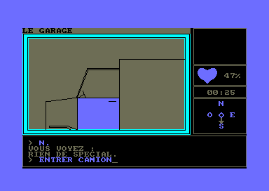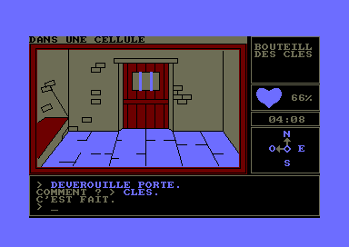 L'entrée des ordres s effectue sous formes de phrases composées au moins d'un verbe et d'un nom (sujet). Seules, les quatre premières lettres de ces derniers sont pris en compte. Ainsi, pour ouvrir une porte, on peut taper « OUVR PORT » ou bien « OUVRE DONC CETTE GRANDE PORTE». En cas d'ambiguïté, le programme réclame des précisions. Dans certains cas, les pronoms « LE », « LA », « LES » peuvent se substituer aux noms qu'il n 'est pas nécessaire de préciser (un seul objet est présent, vous venez de l'utiliser, ou il est apparu dans un message de l'ordinateur). Pour examiner une pièce, [ENTER] remplace le verbe « REGARDER ». — Le programme comprend un grand nombre d'insultes, alors, soyez prudent... |