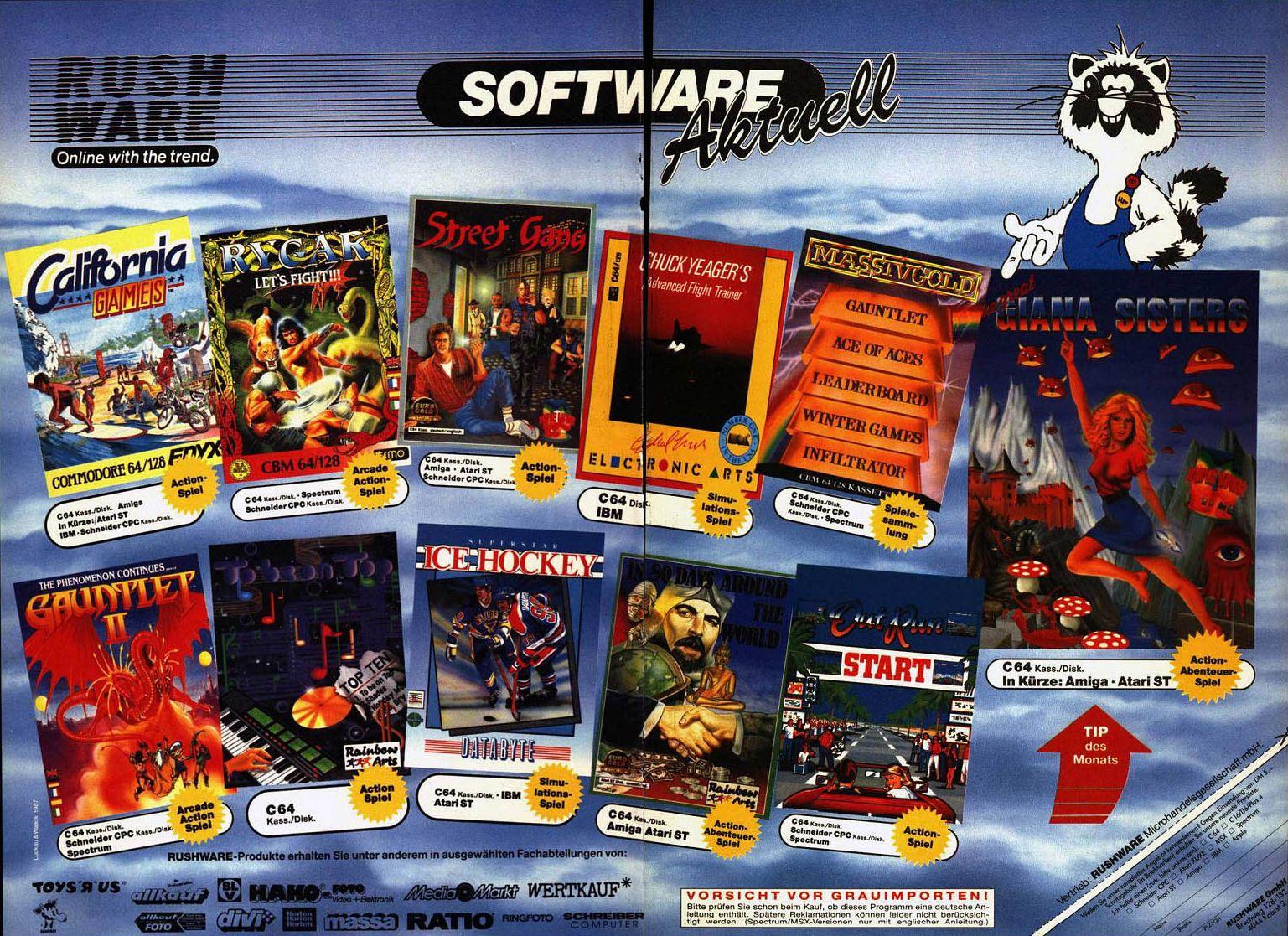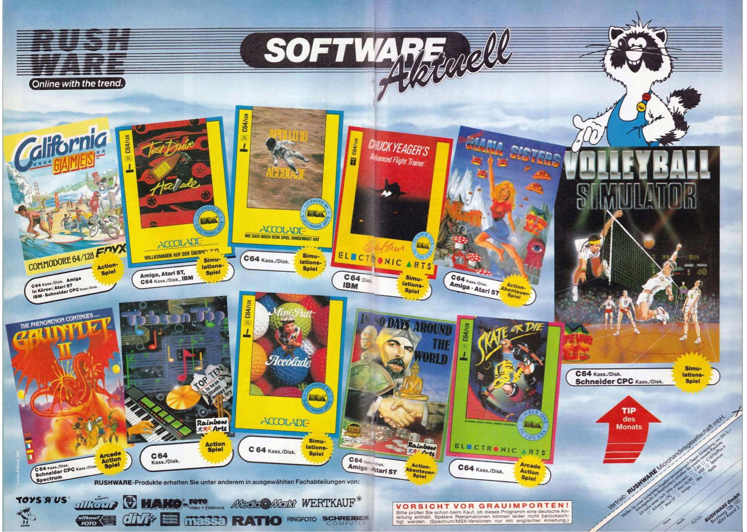 California Games propose six disciplines de loisirs: du surf, du skate board, du frisbie, du bicross, du patin à roulettes et un jeu de balle bizarre. Les plus passionnantes de ces épreuves sont le surf, le skate et le bicross. le frisbie est la plus dure surtout lorsque l'engin revient et qu'il faut e récupérer. Des mouettes, des ballons, les vagues de l'océan et les nombreux bruitages ne font qu'apporter des plus à cette récréation californienne. California Games est à Winter Games ce que l'élève est à son maître. Il ne l'a pas dépassé Lorsque l'éditeur développera directement ses softs sur ST ou Amiga, les versions CPC n'en seront que meilleures. En attendant le n-ième Games procurez-vous déjà celui-ci. De toute façon, il n'y a actuellement aucune marque qui lui arrive à la cheville pour les simulations sportives en série Il est sûr que comparé à un logiciel ne proposant qu'une épreuve, les Games Epyx peuvent être détrônés. Nous attendons le challenger avec impatience ne serait-ce que pour forcer l'éditeur américain à contre-attaquer. AMMAG n°30, page 28, Michel ROVEAU |