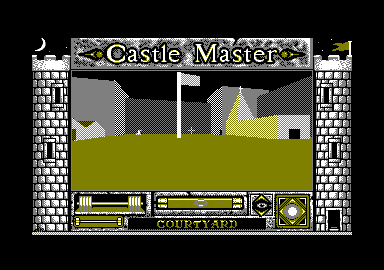 Who would be silly enough to wander around a spook-filled castle armed only with a catapult? "Anyone whose twin has been kidnapped" would be the easy answer, and that's the task that awaits you in Castle Master, the latest Freescape thriller by Incentive. A very dodgy legend has it (I call 13 pages of the worst poetry since Pam Ayers pretty dodgy) that an evil magician called Magister hangs out in Castle Eternity. There he sits, plotting the downfall of mankind and gloating over his good fortune at the introduction of the poll tax... This, however, isn't enough to keep him quiet and he's spirited away your twin (you can play either the brother or sister and they have different skills) to one of the towers, and if they are going to see another sunrise, you'd better get into rescue mode -like now! The only weapons you've got when you arrive at the dark and dangerous castle are your wits and a few rocks. Which is OK, because everybody knows even the biggest, meanest ghosts in the world flee in terror at the first sign of pebbles! (OK, maybe not) Undeterred, you prepare for the adventure that's about to begin. A quick stroll around the castle serves to remind you of two things. Firstly how smart the world of Freescape is, with all its smooth-moving 3D landscapes and buildings, and secondly how darned sly those Incentive bods are. Round the back you can find a large boulder that apparently does nowt (don't believe it, though) and the wizard's hut, which is conveniently locked. So it's back to the drawbridge and time to bung a brick up at that funny white box to the left. Switching to aim mode, just line that cursor up and throw. Boff! Mind you're not standing too close to that thar' drawbridge when it comes down, or you'll find your knight/knight-ess a tad shorter than they were a few seconds before. Flat and dead is a better description. Remember that this is Freescape, the land where the scenery hurts. A quick scurry into the courtyard, and you know the games afoot..