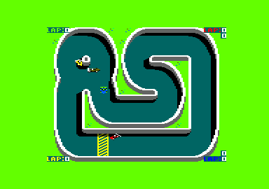 Sur les chapeaux de roues Pour cette première course, j'ai choisi d'affronter les voitures pilotées par l'ordinateur. Contrairement à Super Sprint, il n'y a qu'un niveau de jeu mais la vitesse des «drones» et le nombre de tours à effectuer étant paramétrables, cela revient au même. Voilà, la course peut commencer. A vous de ramasser un nombre suffisant de clefs magiques. Allié à un bon score, la possession de ces clefs vous permettra d'augmenter les performances de votre engin ( tenue de route, vitesse, accélération, etc. ) Si l'animation est un peu lente, les graphismes de qualité ainsi que le bruitage sans génie mais efficace vous permettront de passer de bons moments, surtout si vous jouez avec une autre personne. Ah oui, encore une chose : si ce n'est déjà fait, essayez-donc de percuter un mur, vous aurez le plaisir de vous voir exploser tandis qu'un hélicoptère de la télévision survole le terrain. Bonne course. Cyrille Baron , AM-MAG n°33 |