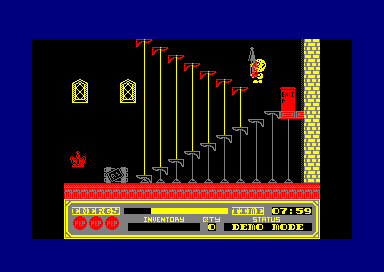 Au cours de votre quête frénétique dans la capitale anglaise, vous rencontrerez plusieurs personnages. Certains seront très antipathiques (Abru Cadabbra particulièrement : il vous détruit dès qu'il y a contact) et d'autres vous aideront. Il est à noter que ces derniers sont manipulables comme des objets : il suffit de se positionner dessus et de valider par "feu" ou par "J" ; "K" ; "L" pour se les approprier. Le nombre d'objets ou de personnages capturés est indiqué dans la rubrique "Quantity". Près de celle-ci on trouve l"'Inventory" signalant l'ustensile actuellement disponible. Dernier indicateur du tableau de bord : la fenêtre "status" dans laquelle seront affichés les noms des lieux et des personnes que vous croiserez. City Slicker est un jeu à tableaux multiples dans la lignée de Jet-Set Willy et de Manie Miner. Les graphismes sont toutefois plus fouillés et plus colorés. L'animation est assez réussie surtout dans la séquence finale (la bombe explose !). Je dois déjà vous quitter : j'entends les douze coups de minuit qui résonnent. AMSTAR n°7 |