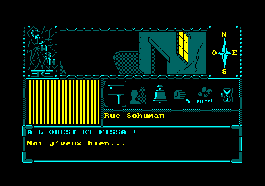 Bien que relégués dans une fenêtre occupant à peine un tiers de l'écran, les graphismes n'ont aucun mal a récréer l'ambiance d'une banlieue triste, avec ses bars mal famés, ses terrains vagues et ses ruelles désertes. Pour s'orienter dans ce dédale, il est impératif de dresser un plan de ta ville et d'y noter le nom des rues , les lieux ayant parfois tendance à se ressembler. (Disquette Ere informatique pour Amstrad CPC). Jean-Philippe Delalandre , TILT n°49 dec87 |