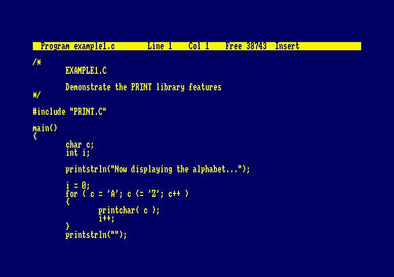PhrozenC's usage is really easy. Basically, it converts a C file (and its dependencies) directly to a single ASM source file, ready to be compiled with Arnor's Maxam or Richard Wilson's WinAPE.PhrozenC is a single pass compiler, meaning that it does not have to keep the whole source-code to be compiled in memory. It directly outputs ASM opcodes of C code being read. Due to internal usage of SmallC, PhrozenC is not an ANSI-C compiler, but use K&R style C instead. Differences between ANSI-C and K&R style C are relatively small, and explained in a later section. That said, K&R style C is standard, and all compilers on PC platforms are able to compile K&R style C code (GCC, VisualStudio,..). Finally, PhrozenC does not introduce specific optimizations. Developer is able to directly em-beed inlined-ASM, meaning it's possible to include in the earth of a C source-code a pure bunch of ASM source-code.