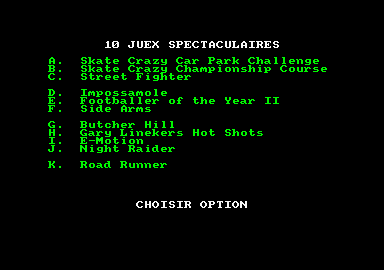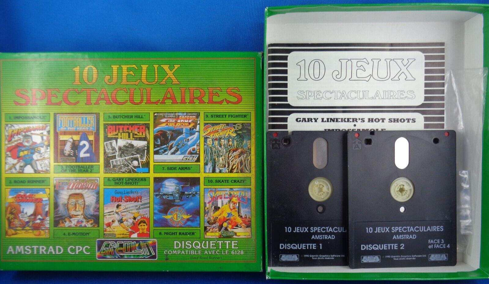 COMPILATION: 10 JEUX SPECTACULAIRES [Impossamole+Football of the Year 2+Butcher Hill+Side Arms+Street Fighter+Road Runner+Emotion +Gary Linekers Hot-Shot!+Night Raider+Skate Crazy]