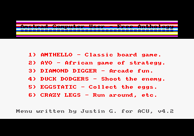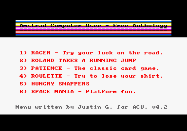 (c) AMSTRAD COMPUTER USERMenu coded by Justin GARVANOVIC