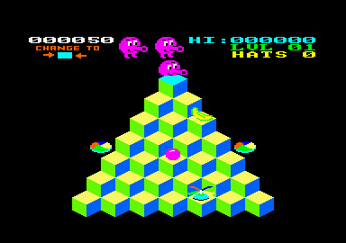 INVADERS This is the standard shoot-'em-up (I can't believe I'm explaining Invaders). Take away all the phazers, smart bombs, thrusters, etc and you're left with something like the screenshot. The block of ships at the top move left and right, gradually getting lower, and your mission is to kill them. Basically. As a faithful representation of an all-time classic, this has to be worth a second look. AXIENS In the history of shoot-'em-ups, this came next. It involves the same old Space Invaders stuff (no doubt something to do with it being a straight conversion of Galaxians!), but with the invaders bombing down the screen with the intention of severely hurting you. There's enough extras here to make this a darn playable game. MUNCHERS You've seen it on the covertape, you've played it to death. Now buy an official version and play that to death as well. Muncher is nice as a PacMan clone but it doesn't really gel. Come to think of it, maybe the original didn't either... MISSILE This one involves an alien race attempting to blow you to smithereens. And, erm, that's it. If you're looking for fast fun and excitement then this game is definitel one to be avoided. CRAZY ER*BERT This was known as 'The Game That No-One Could Control' and it's just as blimmm' difficult today. The easiest way to describe this game is as an isometric beat-'em-up on a mountain. (You have to change the colour of the blocks by jumping up and down on them. Ed) It's too confusing, and it really isn't much fun. Another duff one, methinks. GREBIT If you've ever played Frogger, then you'll understand Grebit. The idea is to guide your frogs across a busy road, and to the safety of a lily pad on the other side. Frogger is as Frogger does, it wasn't all that thrilling then and, well, you can work out the rest yourself. So, we've seen a bundle of old classics, some good, some bad. But whether a collection such as this is worthy of a re-release is debatable. In the end, it's got to be subjective. Remember though that this stuff started tit all. AA |