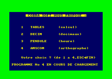 | Page précédente : Compilation: Cobra Soft Disquette Educative 2 |