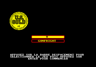 Gunfright (Ultimate). Dans ce jeu d'aventure/arcade, vous vous retrouvez au temps du bon vieux Far-West. Élu shérif d'une petite ville, votre lourde tâche sera de faire régner l'ordre et de débarrasser vos chers concitoyens des crapules, bandits et gangs de toutes sortes... Au départ du jeu, votre habileté au tir vous fera ramasser un pécule plus ou moins conséquent, sur lequel vous aurez à prélever vos frais de cartouches, de chevaux, vos amendes en cas de « bavures »... Car traquer une meute de tueurs à la gâchette facile ne se fait pas sans quelques fusillades et vos électeurs n'apprécient pas du tout (les ingrats !) de ramasser les balles perdues... Résultats : si vous touchez un honorable personnage, vous devrez payer sur vos deniers son enterrement et une « compensation » à sa famille. Un bon conseil, donc, faites le plein de dollars au début du jeu. Si vous capturez des bandits, une prime vous sera alors remise pour vous payer quelques V ! Les Visiteurs Les « télémaniaques » se rappelleront sûrement un grand feuilleton américain appelé « V », ayant pour héros un certain Donovan... Et bien, ce logiciel lui est dédié et vous pourrez tout à loisir revivre ses aventures dans ce logiciel d'aventure/arcade. La Terre a été envahie par d'étranges « Visiteurs » qui cachent derrière une apparence humaine des corps de reptiles sanguinaires. Le héros, Donovan ayant découvert leur machination pour asservir le peuple de la Terre, a organisé une résistance terrienne et réussi à pénétrer dans le vaisseau-amiral de la flotte extra-terrestre. Vous devrez le guider dans un labyrinthe de couloirs et d'étages peuplés de robots peu sympathiques. Votre mission : détruire cinq points stratégiques et retrouver la seule arme qui pourra sauver l'humanité de la servilité : la poudre rouge. Les graphismes sont très beaux quoique répétitifs et les animations très réussies : Donovan court et bondit pour la plus grande joie des yeux. L'arcade se mélange ici à la réflexion. Vous aurez donc à votre disposition un ordinateur qui vous permettra normalement de résoudre des énigmes pour ouvrir des sas récalcitrants, poser des bombes, localiser les points stratégiques et retrouver la formule de fabrication de la fameuse « poudre rouge »... D'un maniement un peu complexe, ce jeu est toutefois digne d'un grand intérêt.