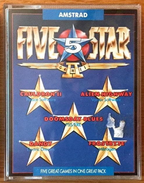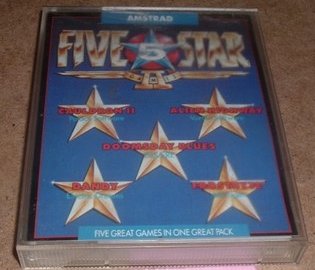 Otra compilación, esta vez de la mano de Mind Gamcs España. FIVE STAR II, pone a nuestra disposición cinco grandes juegos que a su vez han sido cinco grandes éxitos. Ellos son: CAULDRON II, ALIEN HIGHWAY , DOOMSDAY BLUES (EDEN BLUES), DANDY y FROSTBYTE. Como seguramente ya sabréis, estos programas cuentan con una calidad muy alta, en general, en todos podemos destacar los gráficos. Es tanta la variedad pictórica y artística de estos juegos que no vamos a extendernos (tampoco nos sería posible) mucho. A destacar al simpático preso de DOOMSDAY BLUES o los concienzudos trazos que forman ALIEN HIGHWAY. Ninguno de los demás queda atrás. Respecto al movimiento sí hay que poner a uno por delante: CAULDRON II, nuestra calabaza puede provocar auténticos deseos de damos cabezazos contra las paredes (bueno, un poco menos). Este programa cuenta con un movimiento excepcional. Ya , a partir de aquí el asunto se hace más variopinto. El sonido, la acción y la adicción son prácticamente diferentes en todos los juegos pero no por ello mediocres. Todos alcanzan un nivel más que aceptable pese a no coincidir entre ellos mismos. En resumidas cuentas, otro Pack a muy buen precio y con unos programas que si aún no tenemos merece la pena conseguir. Incluso, aunque sólo sea para coleccionarlos. Amstrad Acción