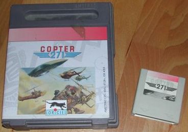 UN JEU AMBITIEUX Un projet ambitieux vit le jour : Copter 271. Il y a un an, certains éditeurs s'étaient contentés de simplement transférer sur cartouche des jeux déjà existants sur CPC pour constituer rapidement une cartouchotèque aux nouveaux venus d'Amstrad. KILL THEM ALL Votre but est presque simple. A bord d'un hélicoptère de combat, vous allez devoir repousser une invasion d'extraterrestres. Votre mission commence au-dessus de la mer. Après une première salve, vous vous rendrez compte qu'il ne sera pas toujours possible d'éliminer tous les vaisseaux ennemis fondant sur vous avec le simple canon-mitrailleur de votre engin. Heureusement, un système d'options vous permet d'enrichir temporairement votre armement avec des roquettes et des missiles divers. Vous évoluez dans un scrolling vertical au pixel près, mais vos déplacements ne sont pas Limités à un seul écran défilant devant vos yeux. Effectivement, l'aire de jeu est composée de deux écrans de large ; et quand vous vous trouvez au milieu de celle-ci, il y a deux demi-écrans à gauche et à droite que vous ne voyez pas. Cela augmente considérablement le champ de vos déplacements, ajoute des scrollings latéraux au jeu, ce qui n'est pas pour nous déplaire, mais le complique aussi car vous ne devinerez pas toujours les mouvements dés vagues d'avions ennemis. Pour vous aider à prévoir ce genre d'ennui, il est possible de sélectionner ou non un jingle sonore qui retentira à l'amorce de chaque attaque ennemie. Copter 271 permet à deux joueurs de s'entraider, chacun pilotant son hélico. Cela ne vous permettra pas toutefois de venir a bout du jeu plus rapidement, le mode deux joueurs étant proportionnellement plus difficile. Le reste n'est qu'affaire de réflexes, de rapidité et de chance comme dans tout bon shoot them up qui se respecte. Et vous mettrez du temps pour découvrir les 4 niveaux de jeu composés chacun de 82 écrans de long ! PAS SI MAL Si Copter 271 peut paraître bien monotone lorsqu'on commence une partie, il s'avère en fait assez intéressant d'y jouer. Bien sûr, les prétentieux possédant une console plus évoluée viendront vous casser les pieds ; proposez-leur alors de prendre le paddle et d'essayer de terminer Copter 271. Ce n'est pas une mince affaire, même si un système de codes permet de reprendre le jeu après un niveau précédemment vaincu.