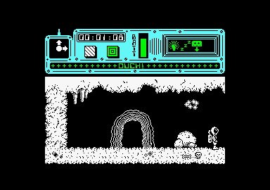 The rate at which Andrew's power is being drained is shown by the screen colour. This changes from bright colours through to dull colours, until there is no more energy left and he sinks slowly into the ground and dies. Various pieces of equipment essential to your mission are buried beneath the ground in the mines, so tools must be located to enable Andrew to dig out the required bits and pieces. There are four levels to the mining system on Eroc 1. Andrew moves around by way of antigravity lifts and teleports. The anti-gravity lifts are indicated by caves or arrows at the bottom of the screen. Teleports transport Andrew to different levels on the Asteroid. He simply stands on them and reappears at a different location in the workings. The visual display at the top of the screen charts Andrew's progress during the mission. The screen to the far left shows the directions in which he can move from his current position. Below this are icons which perform vanous useful functions when activated. The icon window has four separate displays. The first asks the computer for help. The second pauses the game. The third gets Andrew back to his previous position ana the fourth saves this position if he has managed to get the cassette. Unfortunately. The Federation have not supplied Andrew with a map of the mine workings on Eroc 1. In order to complete the mission completely one must be compiled, or else Andrew will be stumbling blindly around Eroc 1 and may never be able to locate the bio-memory segments and solve the mystery of the asteroid belt...