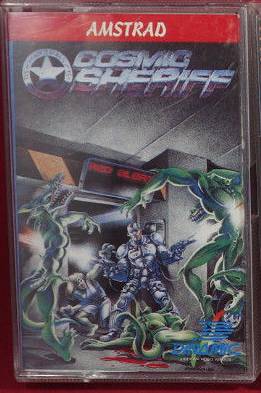 En el año 2023, el cobalto ha tomado gran importancia y la producción mundial está basada sobre todo en los yacimientos de una luna de Júpiter. Pero la desgracia se ha cernido sobre esta luna y un puñado de rebeldes han saboteado la estación, colocando doce bombas que la destruirían por completo. No ha quedado otro remedio que la intervención por la fuerza y para ello se te ha enviado a tí, un heróico Cosmic Sheriff. A través de tres niveles diferentes (almacenes, sistemas de control y superficie) deberás eliminar peligros en forma de androides, invasores y tanques que han sido dispuestos para que nadie alcanzó a las bombas y las pueda desactivar. Hay un número determinado de ellas en cada fase, dos en la primera, cuatro en la segúnda y seis en la tercera, cada una de ellas escondida tras una cerradura que debéis abrir a base de disparos. Una de las novedades que incorpora este «Cosmic She-riff» es que para moveros por las distintas pantallas, debéis disparar sobre los cursores que se encuentran sobre la zona de juego, con lo que se evita la utilización del teclado. El juego en cuanto a desarrollo es original teniendo en cuenta las limitaciones de los juegos de pistola. Por otra parte, está bien ambientado en cuanto a decorados y gráficos de personajes y es adictivo.