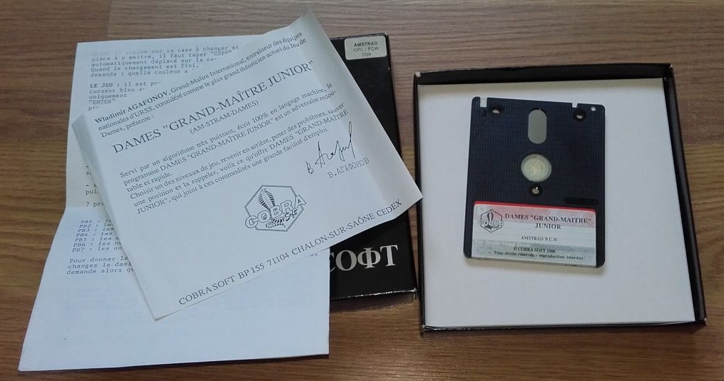 Contrairement aux échecs , les dames sont assez rares sur micro. Ce n'est pas faute de joueurs car ce jeu est très pratiqué (qui n'en connaît pas les règles?). Le niveau moyen des joueurs s'avère cependant médiocre et la venue d'un logiciel accessible, progressif et générateur de progrès pour l'utilisateur est une très bonne chose. Cobra Soft s'est attaché les services de Luc Guinard (champion de France aux dames) pour relever ce défi. Il en résuite un logiciel rapide et puissant. Nous pensions lui donner du fil à retordre, il n'en fût rien... Le niveau apparaît donc tout à fait correct. Il est d'ailleurs possible de choisir la force du programme entre 1 et 9. Ceci correspond au temps mis par l'ordinateur pour répondre. De même, il est possible de choisir la stratégie utilisée. Nos connaissances relativemenl faibles des dames ne nous onl pas permis de juger la différence de lactique-Autre option intéressante : la résolution de problèmes. Vous pouvez disposer à loisir les pions sur le damier. Ainsi, par détournement de l'option « démonstration », l'ordinateur résout certains combinaisons.
