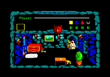 Je me retrouve donc transporté dans un donjon, face à un autel, juste au centre d une étoile à cinq branches. Tout est calme, mais cela ne dure pas ; de petits démons apparaissent brusquement, surgis de nulle part. Dépêchons-nous d'aller visiter les salles avoisinantes : mais il vaut mieux prendre des notes, c'est pire que de se promener dans Paris avec un plan de Dakar. Il va falloir que je demande des conseils au chef, pour être sûr de ne pas me tromper. Pensez donc, dix ans de légion, trois campagnes et, depuis, le "baroude", ça vous forme un homme et à fortiori, un chef. UN PEU DE MENAGE Je fonce dans l'escalier. On ne peut pas dire que le lieu semble inoccupé ; il y a du feu dans les cheminées, des assiettes et des verres sur les tables. Par contre, le ménage ne doit pas être fait souvent on trouve de tout ici, sauf des Samaritaines. Je décide donc de faire un peu de rangement, les allumettes dans les cheminées, les feuilles sur les plantes, les os sur les squelettes, les slips et les chaussettes dans les tiroirs, tes pièces sur les coffres et les Zzzzzz sur les lits ; eh oui, avec la magie, on peut tout faire. De plus, je ramasse des sorts qui me permettent de combattre les petits démons ; ils n'ont pas intérêt à me chercher. Dès le début de ma séance de ménage, des talismans apparaissent que je m'empresse de ramasser ; en haut de l'écran, un tableau m'indique combien j'en aï. Il peut s'agir soit de triangles, soit de carrés, soit de ronds ou encore de croissants. D'après mes lectures, faites en cachette dans la bibliothèque paternelle, il faut garder ces talismans et, quand on en possède quatre du même genre, les amener devant l'autel qui leur est consacré.
