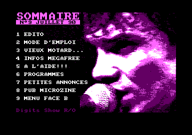 Réglé comme du papier à musique , le numéro 9 est sorti . Beaucoup de changement par rapport aux numéros précédents . D'abord , exit les démos , les préviews et autres pages écran publicitaires qui figuraient sur la face 2 . (Il était temps qu'on lui repasse la démo de DISC+ULTRA!) . La face 2 est maintenant , comme la face 1 consacrée au magazine ce qui est incontestablement un plus . Pour les démos préversions et autres , rien n'est perdu puisqu'elles sont distribuées sur des disquettes séparées par le nouveau service MEGAFREE . Alors voyons un peu le contenu de ces 2 faces . D'abord , on trouve quelques options supplémentaires pour la lecture du magazine . Les 2 plus notables permettent de sauver sur disque la page écran affiché ou de l'imprimer en hardcopy . Un menu affichable par 2 appuis sur ESC présente le résumé des options et chaque touche du pavé numérique renvoie irectement à une rubrique donnée ce qui rend le tout beaucoup plus lisible . Donc le confort utilisateur est en progrès . Du côté qui nous intéresse le plus , les utilitaires , le numéro 9 frappe fort . On y trouve notament un compacteur d'images écran et un système d'affichage écran (des frères danlos) qui offre 20 manières différentes d'afficher un écran . Un programme de recopie d'écran (extrait du programme dessin technique édité d'abord par RADIO PLANS puis MICROLOGIC) et publié dans MEGAMAG 9 avec la bienveillante autorisation des 2 éditeurs successifs . A noter que ces 3 programmes sont d'une efficacité et d'une qualité qui auraient pu leur valoir les honneurs de SOS PROGRAMMEURS ce qui est assez rare dans les fanzines . Autre chose rare , une étude des magazines anglais dédiés au CPC et les adresses ou les trouver . Une nouvelle rubrique , 'HELP' , posez les questions , on-y répond . Ca me rapelle quelque chose mais quoi ? J'en profite pour poser une question qui me tient à cœur depuis des années : Comment reproduire ou simuler avec un drive DD1 normal des pistes de 19 secteurs taille 2 OK écrites avec un drive spécial ? Dans les domaines plus courants , un essai comparatif de 3D VOICE CHESS MASTER CHESS - CYRUS . Des musiques , des tests de jeux , un rectificatif pour faire fonctionner MEGAMAG 6 sur 6128 et toujours les astuces , solutions de jeux , adresses de clubs et fanzines (Faut pas croire mais tous les trimestres il en trouve de nouvelles) . Et pour conclure , pour une fois , un domaine dont on n'a vraiment rien à secouer , le retour de l'éternel polémique MEGAMAG-MICRO-BOY concernant les images écrans ! Heureusement il semble bien qu'on en voie la fin mais quand même , 4 pages pour solder cette querelle à l'heure où ERE INFORMATIQUE rachète son label à INFOGRAMMES , était-ce bien utile ? Au passage une petite question au sujet des fanzines qui devraient être constitués presque uniquement d'images comme le suggère MICRO-BOY avec des tests de jeux 100 fois effectués pour boucher les trous entre les images : N'est-ce pas la une forme de masturbation intellectuelle dont la substantifique moelle (si j'ose dire) se résume à 'Regardez comme nous sommes doués et essayez donc d'en faire autant ...' ? Il semble bien que certains 'auteurs'manquent des vertus pédagogiques et de l'imagination nécéssaire pour dépasser le stade de l'affichage pur et simple et souhaiteraient voir le monde de l'informatique plonger dans la même médiocrité . Ce n'est pas une raison pour être tenté de suivre le mouvement car il reste encore beaucoup de monde qui préfère le contenu au contenant ! SOS PROGRAMMEURS à une présentation pour le moins rustique , souffre d'une impuissance congénitale au niveau des images et est de surcroît payant , ce produit a donc toutes les tares de la création et vous qui lisez ces lignes y-êtes abonnés . Pourquoi ?