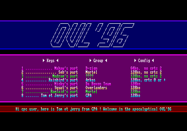 L'Amstrad CPC est une machine 8 bits à base d'un Z80 à 4MHz. Le premier de la gamme fut le CPC 464 en 1984, équipé d'un lecteur de cassettes intégré il se plaçait en concurrent du Commodore C64 beaucoup plus compliqué à utiliser et plus cher. Ce fut un réel succès et sorti cette même années le CPC 664 équipé d'un lecteur de disquettes trois pouces intégré. Sa vie fut de courte durée puisqu'en 1985 il fut remplacé par le CPC 6128 qui était plus compact, plus soigné et surtout qui avait 128Ko de RAM au lieu de 64Ko.