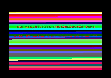 Quite some time ago, Mr Wootton sent us in a raster demo to show off the colours available on-screen.This time, he's gone a step further, recreating all 27 colours on screen in a stable picture.The ideal starting place for a demo perhaps?Save it before running, otherwise you'll have to reboot and lose the proggie!