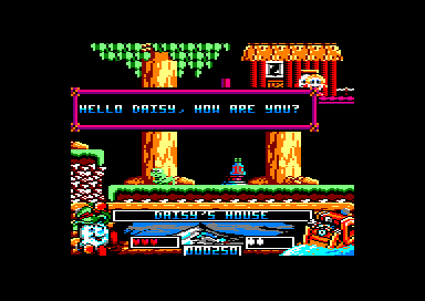 Other people may try to fob you off with allegations that the puzzles are totally obvious anyway, with no suitable improvement being made in this latest escapade. Would you have thought to give Denzil the screwdriver after he tells you that he has lost his tools? And would you have fathomed the connection between the spanner. the broken generator and the fact that Dora's electricity keeps going off? The answer is most probably: probably. On the other hand, would the prospect of using the the whip to lasso yourself past an otherwise impossible jump have sprung to mind? (It took me ages to figure this out). Come to think of it, would you have found the whip in the first place? It's in one of the houses, which on this one occasion is entered through the window rather than the door (this took me even longer). For the most part the puzzles in Crystal Kingdom Dizzy are brain-blendingly obvious, with the odd obscure one thrown in for what Codemasters' seem to term good measure (as this is not the first time an obscurity complaint has been made of a Dizzy game). And when I say obscure I mean So what does this mean? It means that the game is tar too simplistic. mars what. The only method of death is neatly provided by the arcade element, but this, as ever, is low and restricted to timing your way over the occasional snake or bird. This lack of opportunities for death, the ease of puzzles and overall familiarity can only account for Dizzy's instant playability and even more instant addictiveness. This in turn could be a problem - how long really before you finish the game? Hours rather than days, maybe.