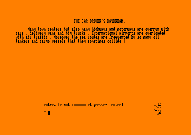 Et un logiciel d'anglais, un ! En voilà une chose qu'elle est bonne. Et une bonne nouvelle n'arrivant jamais seule (célèbre proverbe shakespearien), c'est un bon logiciel que voilà. Il s'appelle DOWTOWN HERO et est édité par Loisi Tech, décidément en verve ce mois-ci (cf AMSTRAD A LA MATERNELLE). DOWTOWN HERO est un programme très complet et très riche, portant aussi bien sur le vocabulaire que sur la syntaxe anglaise. Le tout se passe dans des décors graphiques qui, sans être extraordinaires, ont au moins deux mérites : ils sont sympas et drôles. Vous êtes guidés dans votre démarche par un petit personnage rigolo, genre Snoopy. Les exercices sont nombreux et variés, et il semble bien que le programme dispose d'une bonne réserve de données. Enfin, ce qui ne gâche rien, le logiciel est très construit et possède une excellente ergonomie. Pas vraiment le programme du siècle, mais un logiciel qui peut servir de base de révision pour tous les élèves de Seconde, Première ou Terminale.