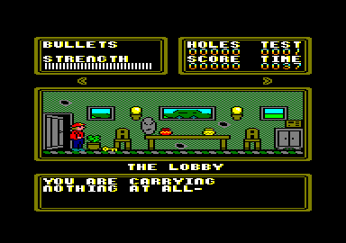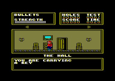 La musique et les bruitages sont programmés de main de maître. Les graphismes quant à eux ne sont pas en reste. Après un chargement assez long, le joueur découvre l'écran de jeu. Comme sur la plupart des logiciels du même type, la pièce où le joueur se trouve est représentée en coupe. Différent objets peuvent et doivent être trouvés en cours de partie. Certain de ces objets traînent à même le sol, d'autres sont cachés dans des placards. A cet effet, un menu qui apparaît par simple pression d'une touche vous propose différentes options. Ouvrir, prendre, poser, utiliser, etc. Seul un habile jonglage entres ces touches et votre joystick vous permettra de terminer le jeu en bonne état. Heureusement, il est proposé au joueur au début du jeu de configurer le clavier à sa guise. Cyrille Baron , AMMAG n°31 |