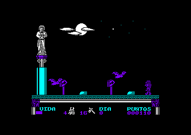 Sangre vikinga Delta Software, es como ya sabéis, una compañía española de reciente creación, que ha elegido como principal carta de presentación para su debú en este mundillo el título que nos ocupa, «Drakkar», un juego que, sin embargo, ha sido realizado por un grupo de programadores ya veteranos en este mundo: Diabolic, los autores, entre otros, del clásico «Nuclear Bowls». El argumento del juego nos traslada hasta los tiempos de los vikingos donde Erik, un joven guerrero de esta raza, va a a vivir una increíble aventura. Su misión consiste en intentar conseguir el trono para su pueblo, para lo cual va a tener que realizar una serie de tareas realmente complejas y peligrosas. Nuestro protagonista tendrá que recorrer un extenso mapea-do compuesto por 150 pantallas dispuestas en estructura laberíntica, y que, a groso modo, están divididas en dos zonas principales: el bosque y la ciudad. En el bosque se desarrollará la primera parte de nuestra misión, que consistirá en encontrar a una serie de dioses que nos indicarán el orden correcto en que deberemos realizar una serie de pruebas. Una vez hecho esto podremos dirigimos a la ciudad, donde encontraremos los objetos necesarios para llevar a cabo dichas pruebas, si bien desgraciadamente todos ellos se encuentran custodiados por innumerables peligros. Comenzamos el juego con cuatro vidas, perdiendo una de ellas cada vez que nuestra energía llegue a cero. No hace falta decir que cualquier contado con alguno de los enemigos que pululan por las pantallas del juego supondrá un considerable descenso de este marcador. Pasando a enjuiciar la originalidad y calidad técnica del programa hay que decir que éste se asemeja mucho en su desarrollo al ya clásico estilo que marcaran juegas como «Everyone's a Wally», especialmente en su mapeado, realizado de forma lineal y utilizando la técnica del paso de pantalla a pantalla. Esto no dice mucho evidentemente en cuanto a las posibles innovaciones que el juego pudiera ofrecer en cuanto a su programación, si bien esto queda, en cierto modo, compensado por sus buenos gráficos y su entretenido desarrollo que, sin duda, resultará familiar y apetecible a los aficionados a las videoaventuras. J.E.B.
