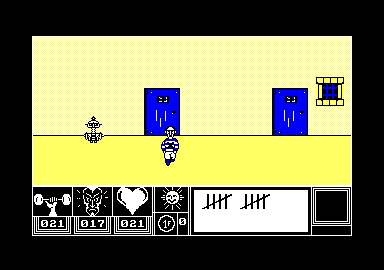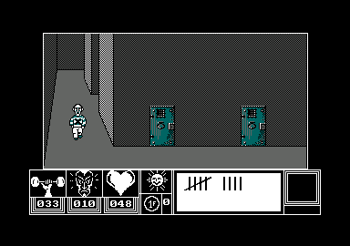 LE PèRE NOËL S'ECHAUFFE Les maisons de soft s'agitent les neurones à l'approche de Noël pour sortir LE logiciel qui explosera tous les charte en nombre de ventes. Ainsi. Ere informatique se prépare à commercialiser sont logiciel sur Amstrad (dont vous avez en exclusivité HHHHebdo les premières Images d'écran), tous à classer dans les aventures graphiques, Eden Blues va vous faire voyager dans des univers piégés dans lesquels votre but ultime sera bien entendu la survie. La photo avec la ligne de status en bas vous montre ce à quoi pourra ressembler Eden Blues, que vous pratiquerez entièrement au joystick , bénéficiant en permanence de renseignements sur votre état physique et mental ainsi que le nombre de tours écoules dans ce sinistre labyrinthe dans lequel les vilains robots vous ont collé.