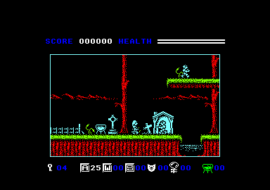 Les douanes intergalactiques avaient réussi à bloquer l'arrivée des premiers lasers budgets, mais c'était compter sans la sagacité de votre serviteur et les tuyaux du célèbre Robby. Après moult tractations, nous parvînmes à obtenir l'adresse d'un petit homme vert qui s'occupait de marché noir. Il allait m'en faire voir de toutes les couleurs... ELFE-TOI... Vous savez, j'ai toujours eu des goûts très simples : la nature, les petits oiseaux, les grandes balades en forêt. Le chef, qui est constamment à l'écoute de ses hommes et qui a un don rare pour concilier travail et loisir, surtout le travail d'ailleurs, s'est donc empressé de me proposer cette mission. Une grande forêt, un arc, des flèches, le retour à la vraie vie, quoi ! En attendant, ce sont plutôt les morts qui reviennent à la vie, et cette forêt, ce serait un enchantement s'il n'y avait pas toutes ces pierres tombales. D'ailleurs, c'est bien d'enchantement qu'il s'agit puisque je dois retrouver quatre potions magiques et les mélanger dans un chaudron afin de devenir immortel. Mais bien sûr, tout cela ne va pas de soi. Les morts vivants me veulent mort ou vif, les yeux géants ont l'œil sur moi, les hommes lézards ne me laissent pas le temps de lézarder. Pour moi qui en suis une fine, ce n'est pas compliqué de faire mouche avec mes flèches, mais celles-ci sont en quantité limitée. Heureusement, à travers les dizaines d'écrans parcourus (caves souterraines, plates-formes mobiles, ponts qui s'écroulent, bref le classique trip Manic Miner), je peux trouver de nouvelles munitions et de nouvelles armes (boucliers, haches lourdes, bâton de destruction). La réalisation honnête, quoiqu'un peu spectrumesque (mode 1, quatre couleurs), le nombre élevé de pièges à résoudre feront que, comme Elfe, vous vous souviendrez certainement de ce petit adage : "Elfe-toi, le ciel t'aidera."