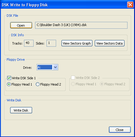 Programme permettant de transférer le contenu d'une disquette CPC dans un fichier (et vis-versa). Support les formats .DSK et .EDSK. Tout ca biensur , sous environnement compatible Windows 32bits ( Windows XP ou Windows 2000 ).